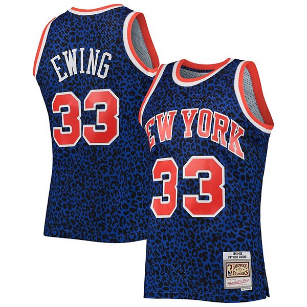 Men S Mitchell Ness Patrick Ewing Blue New York Knicks Hardwood Classics Wildlife Swingman Jersey